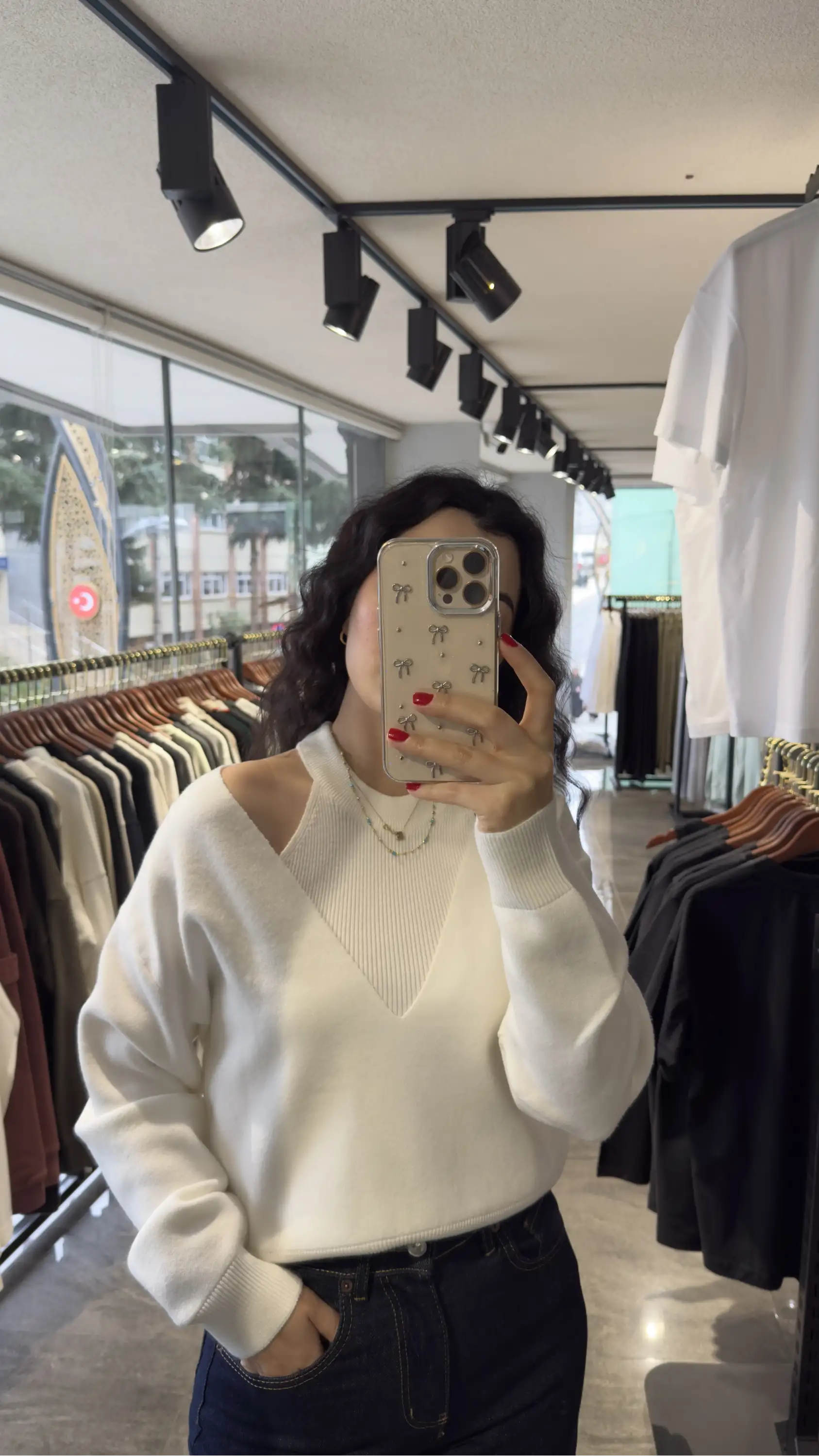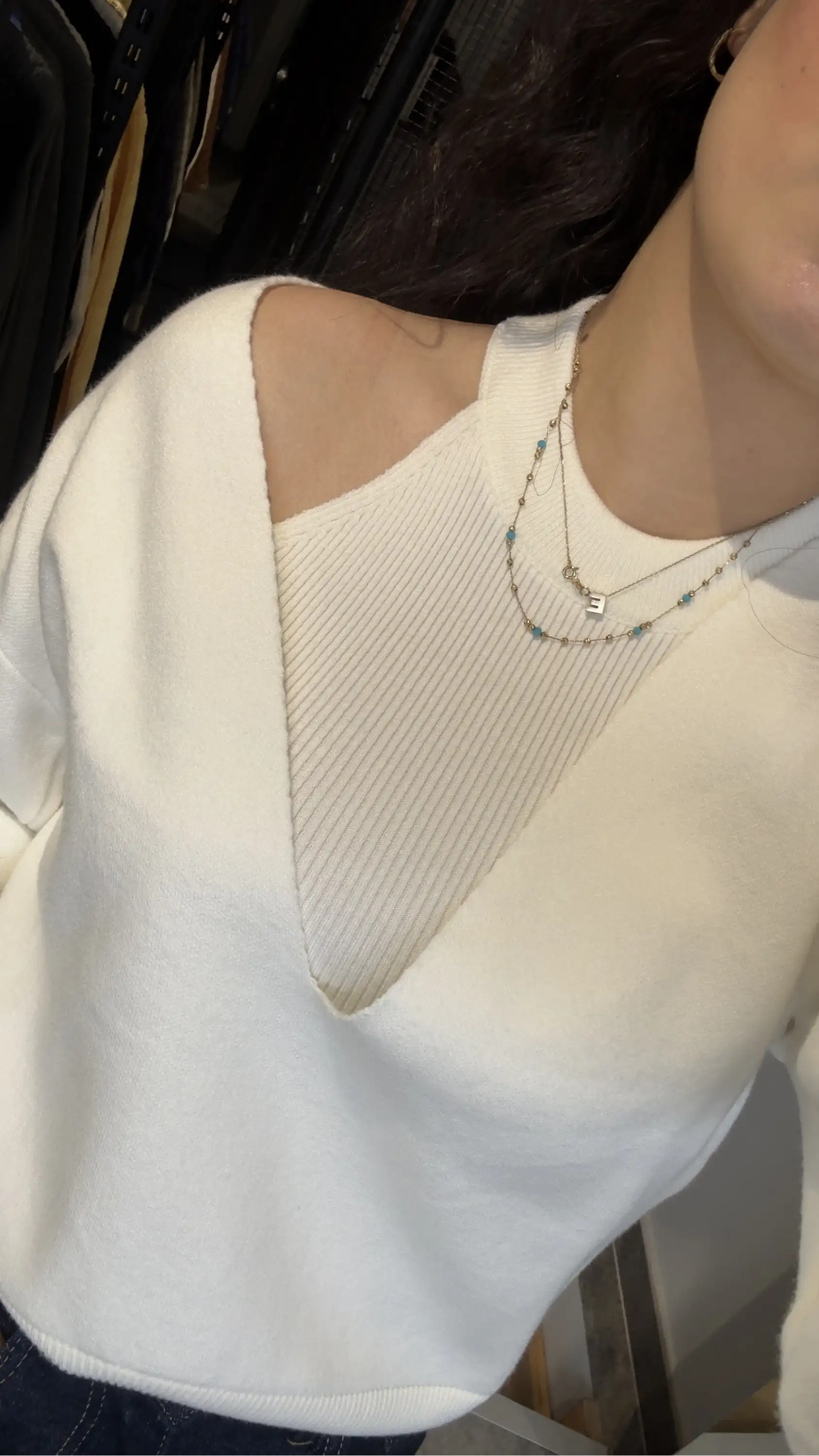 Beyaz İkili V Yaka Kazak