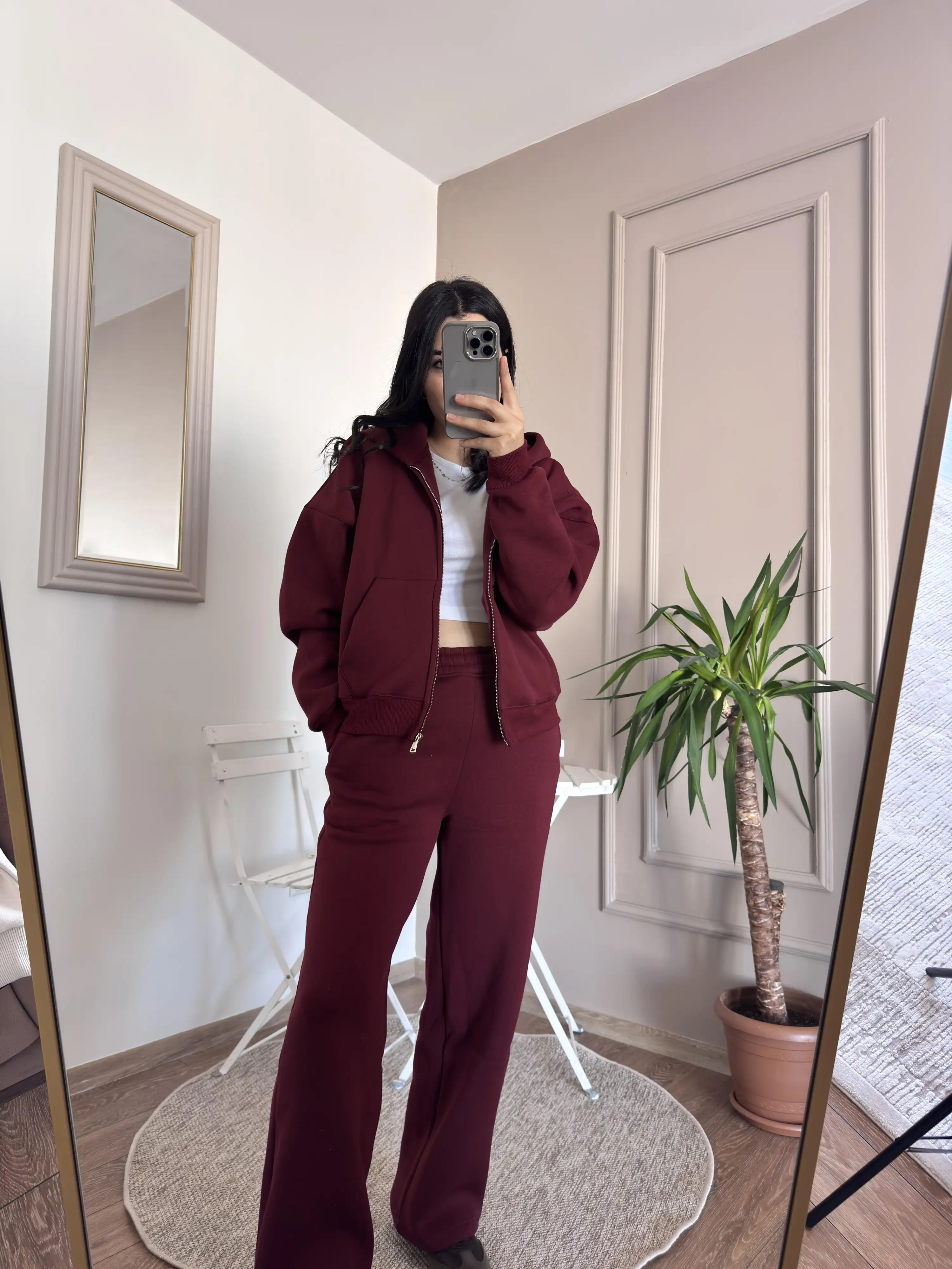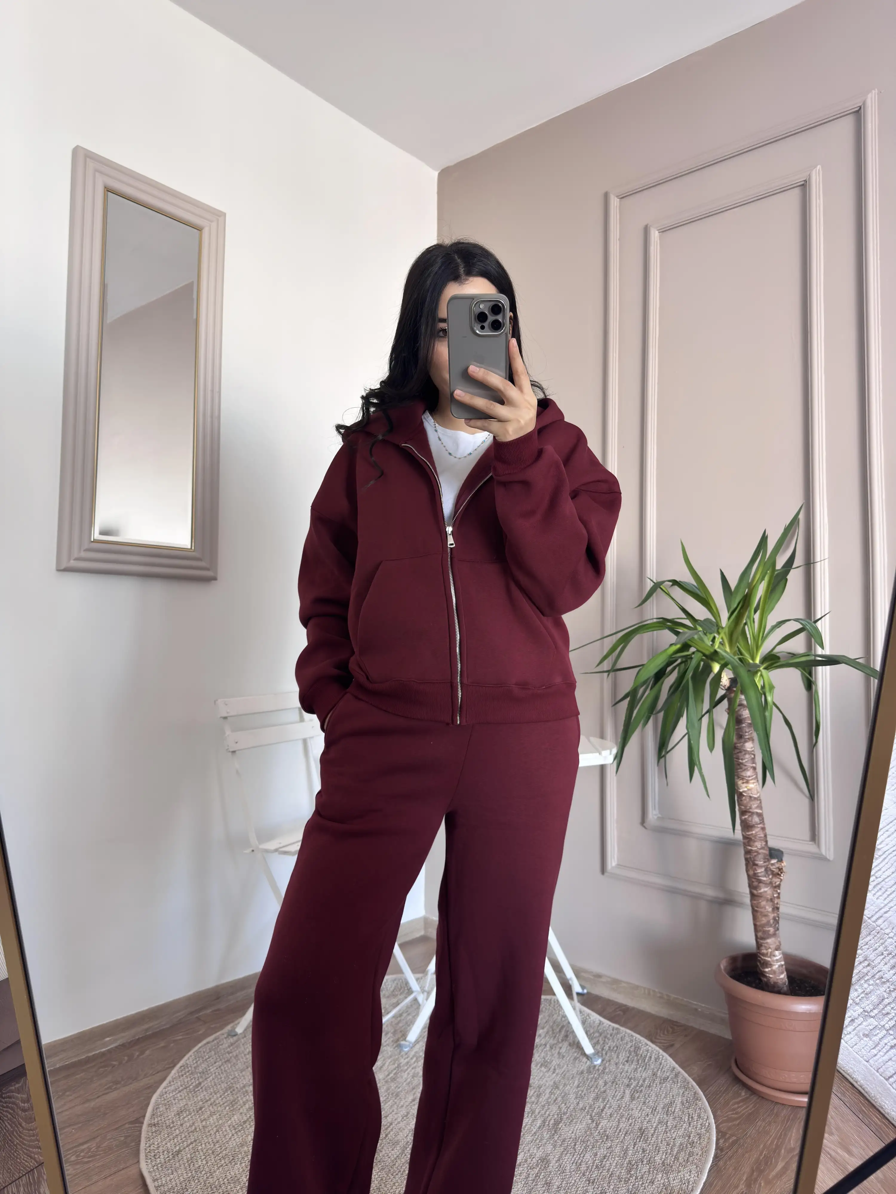 İçi Şardonlu Bordo Eşofman Takımı