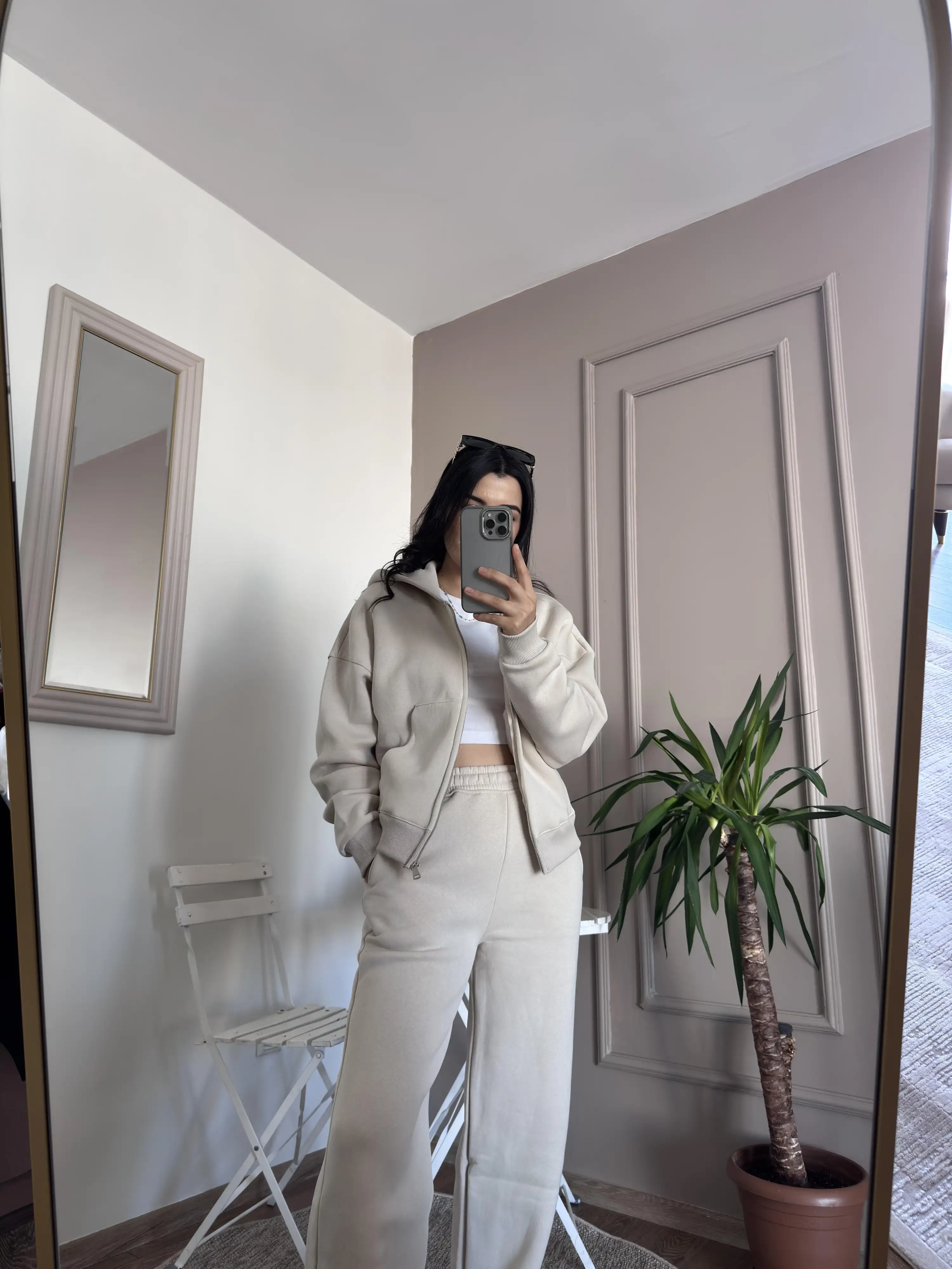 İçi Şardonlu Krem Rengi Eşofman Takımı