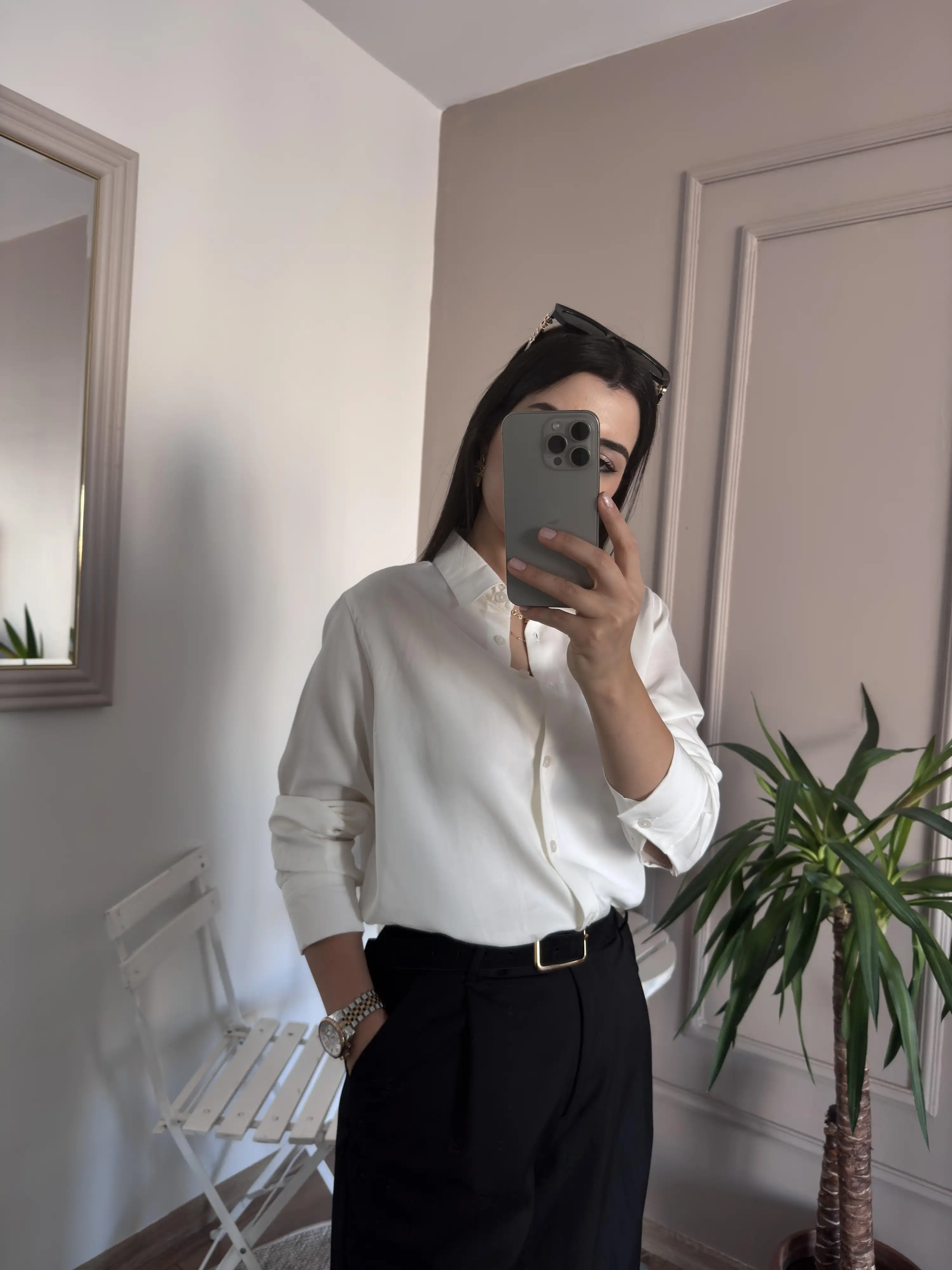 Beyaz rengi ile klasik, temiz ve her kombine uyum sağlayan zamansız bir görünüm sunar.