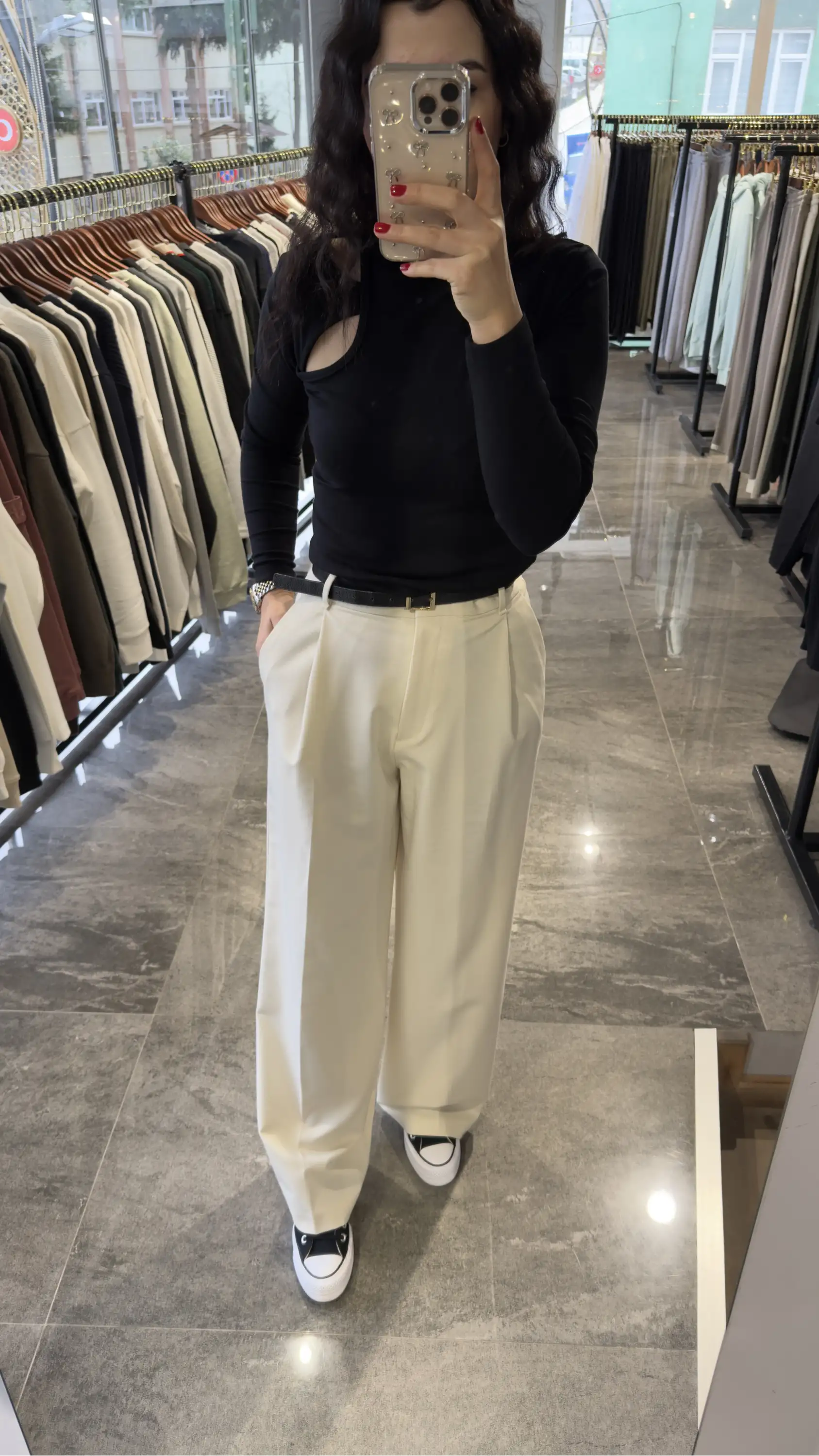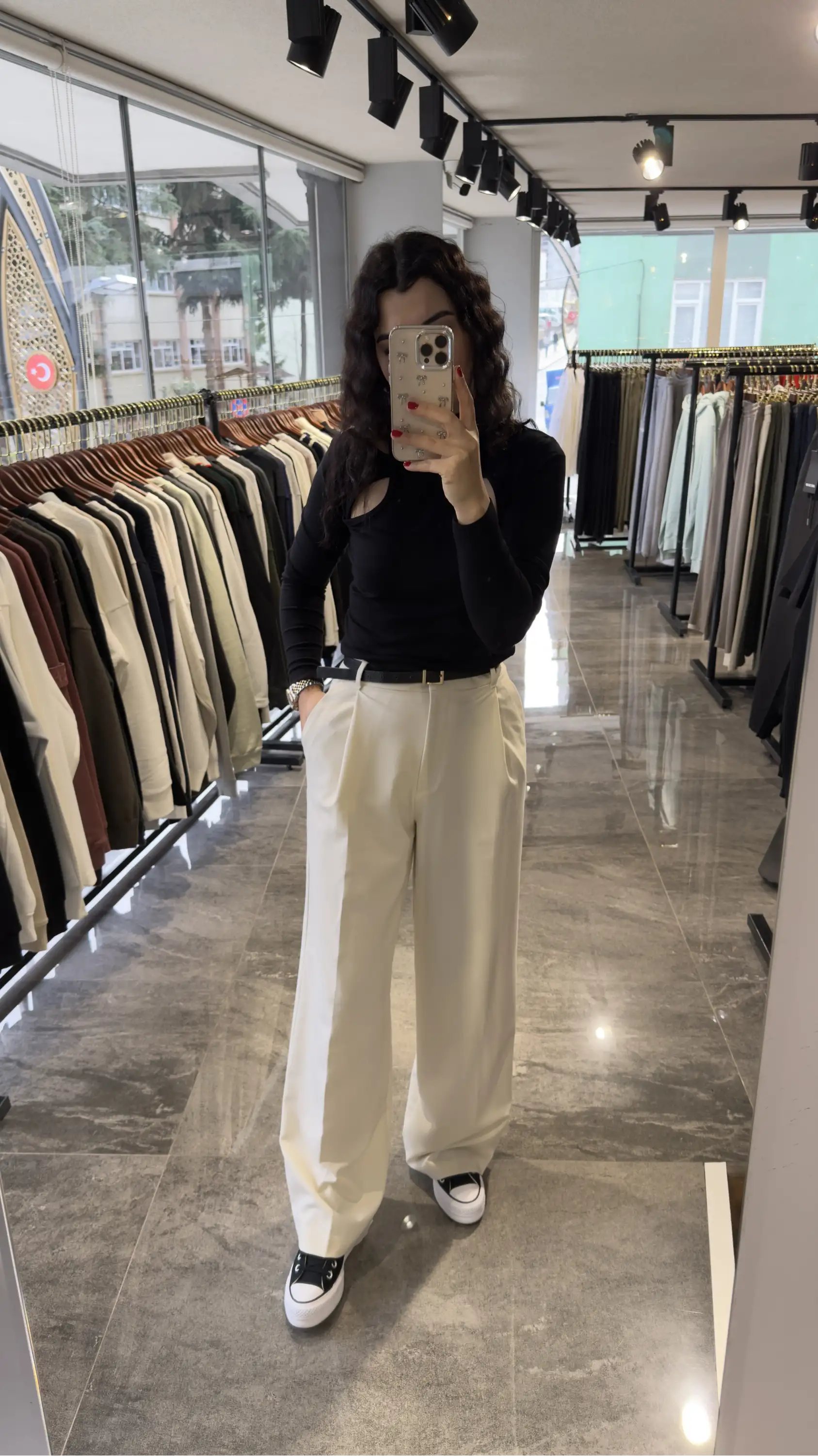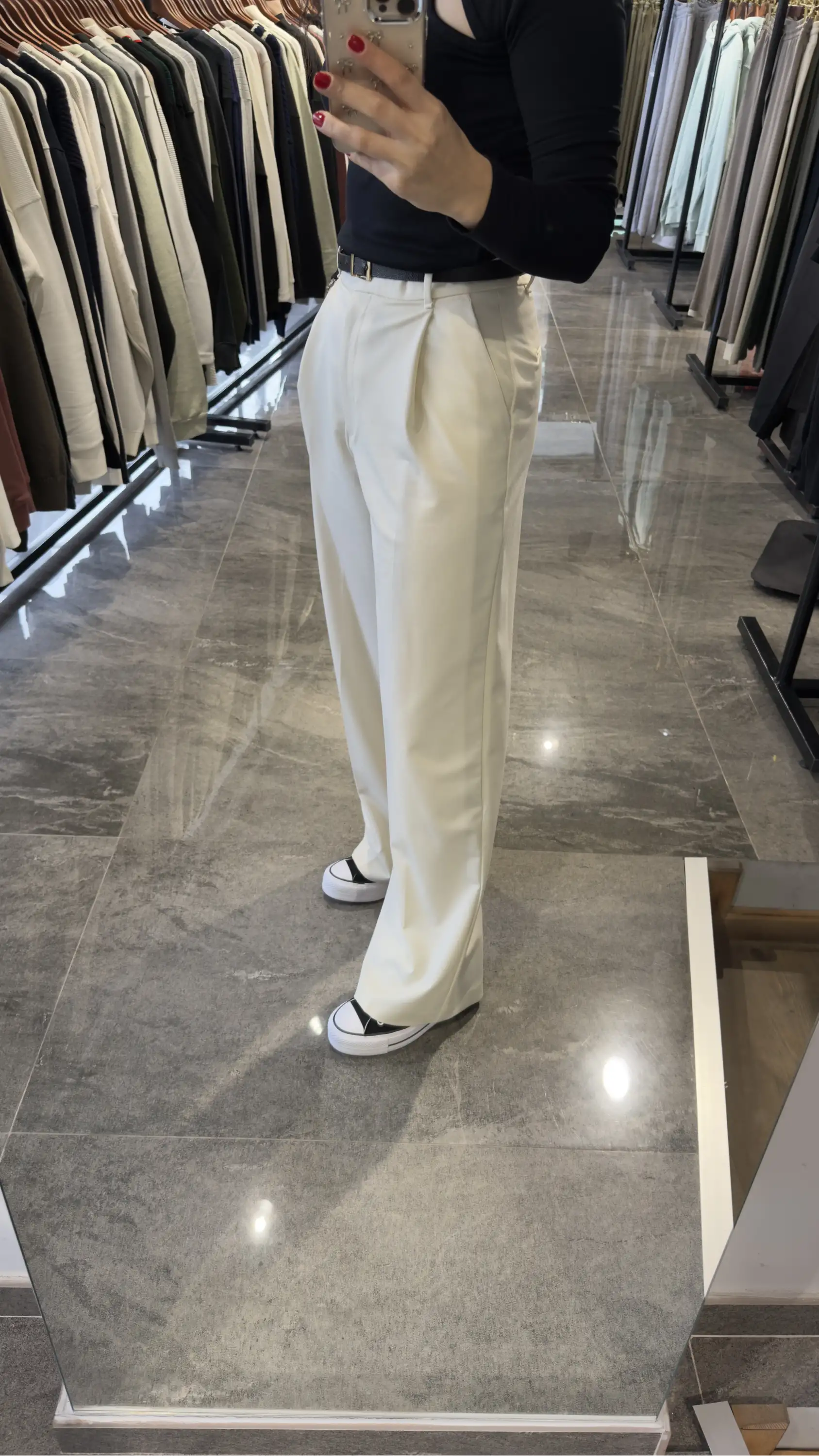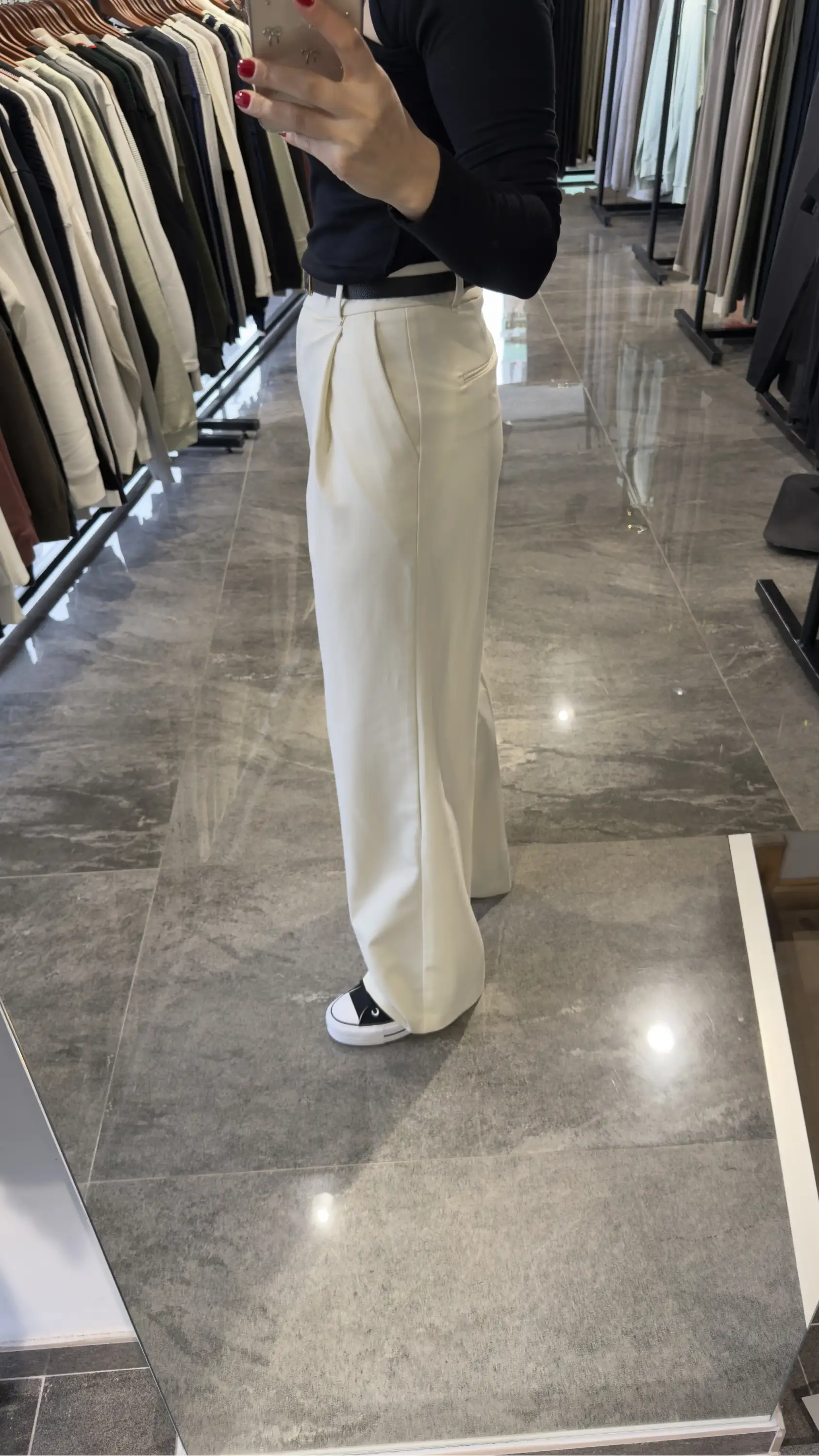 Tek Pile Ekru Palazzo Pantolon Kumaş Türü: Kumaş Kalıp:Tam Kalıp Modelin Giydiği Beden : S beden Model Ölçüleri Boy: 1.65 cm Kilo: 56 kg Yıkama Talimatı: Ürünün iç etiket bölümünde gerekli yıkama talimatı yer almaktadır