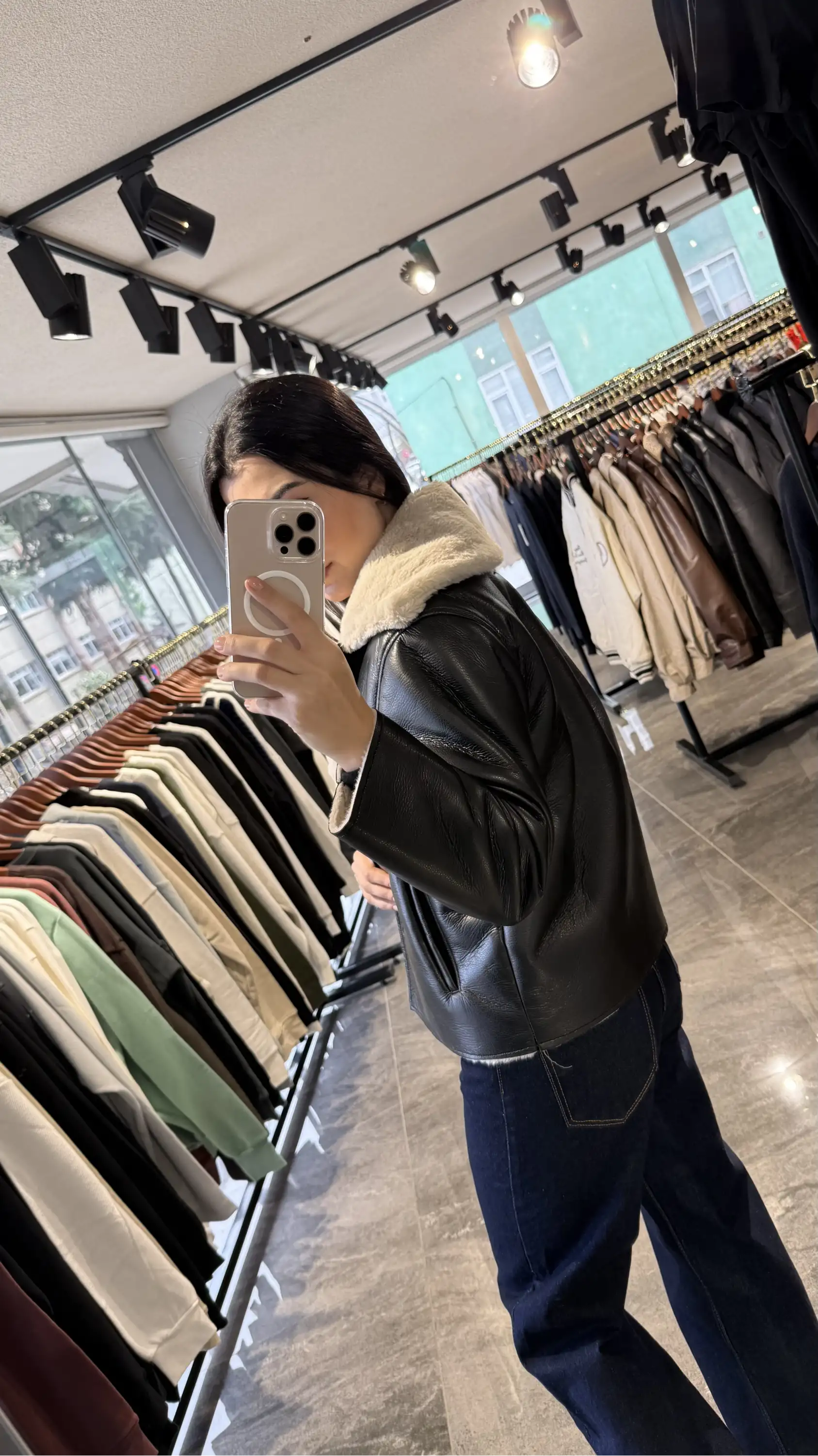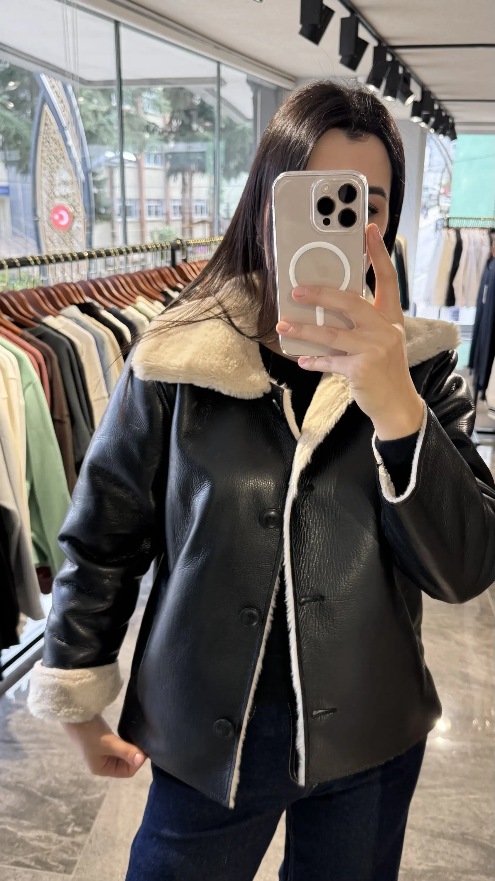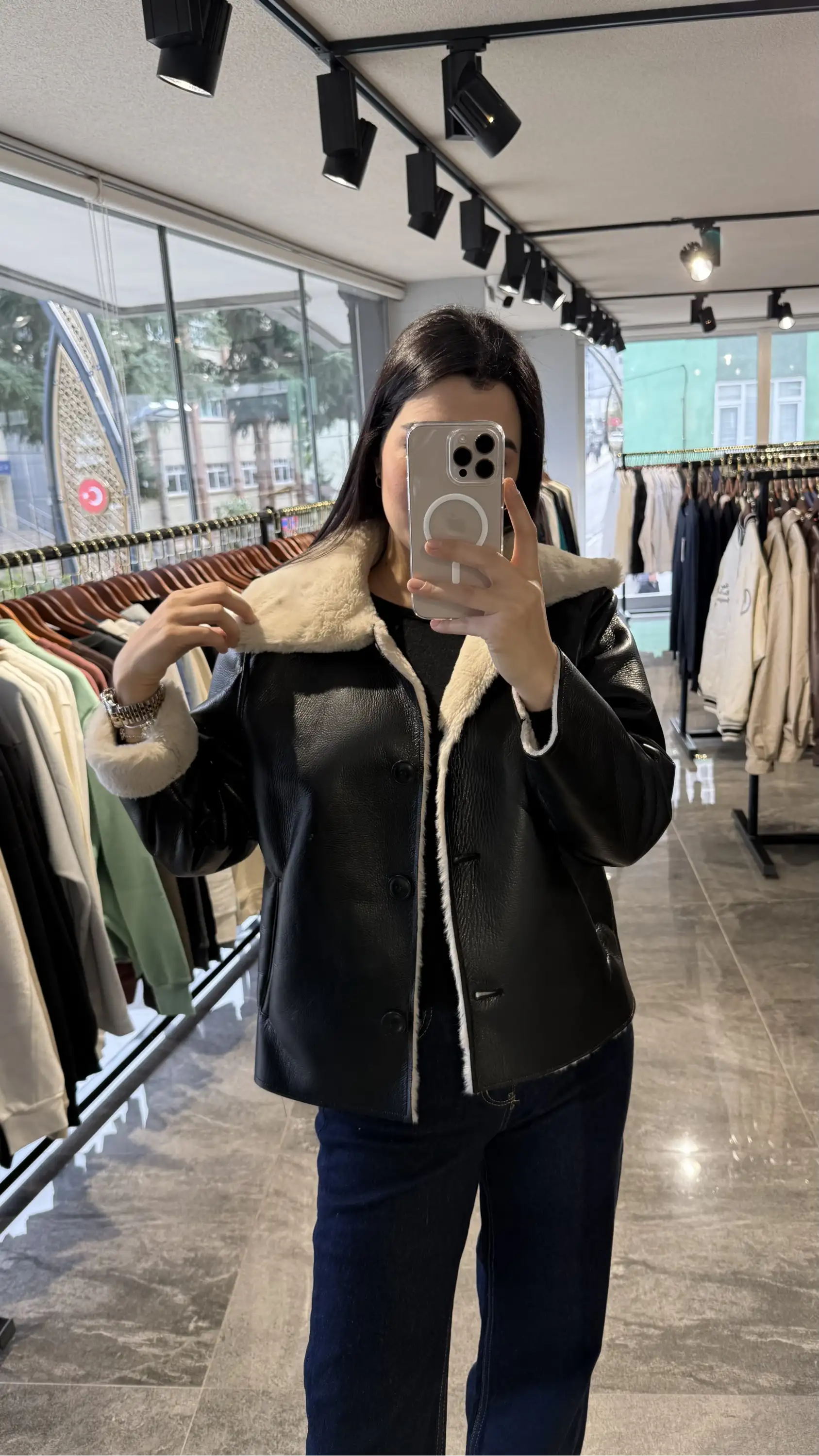 Yandan Cepli İçi Kürklü Siyah Deri Ceket