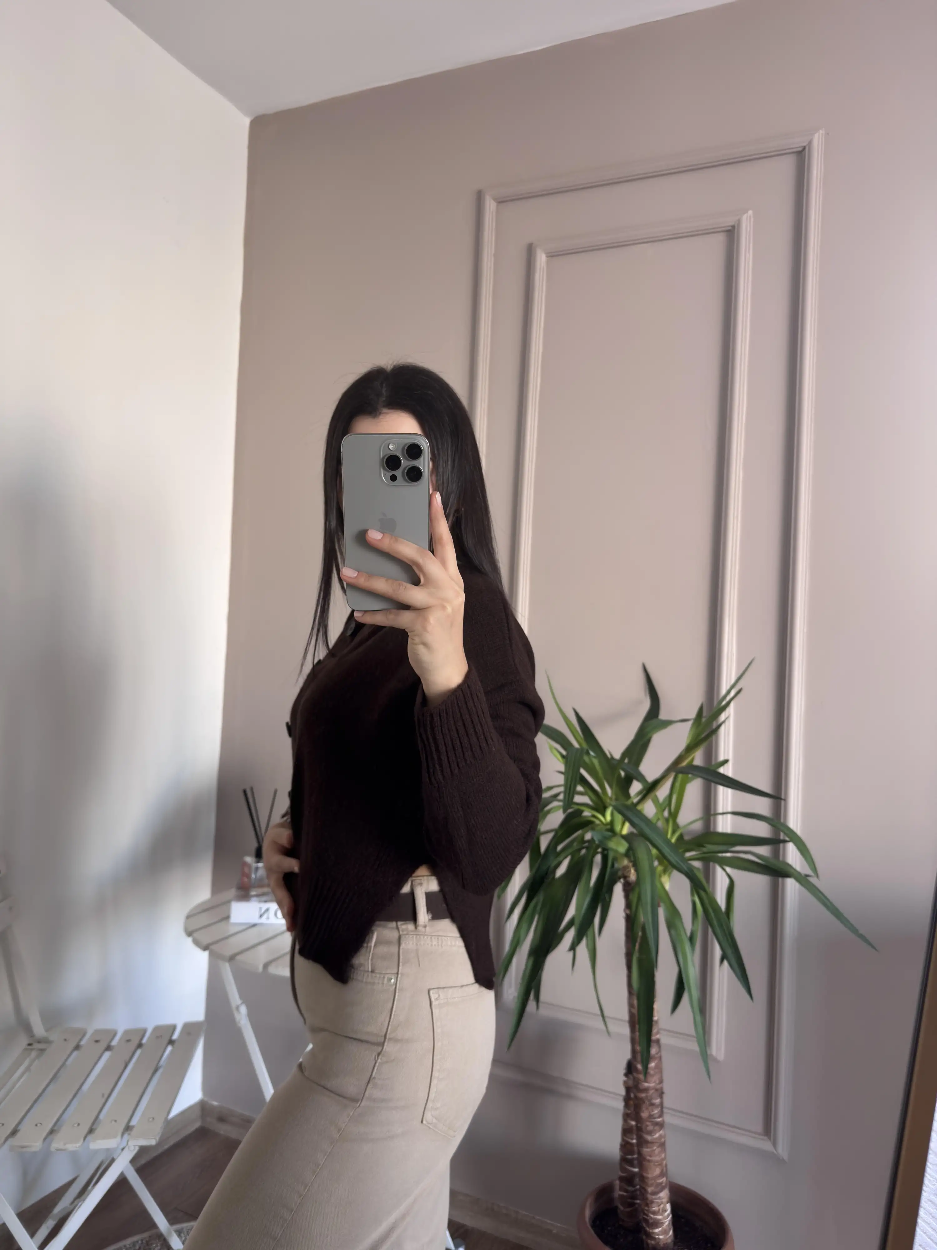 Kahverengi rengi ile sıcak, doğal ve her kombine uyum sağlayan şık bir görünüm oluşturur.