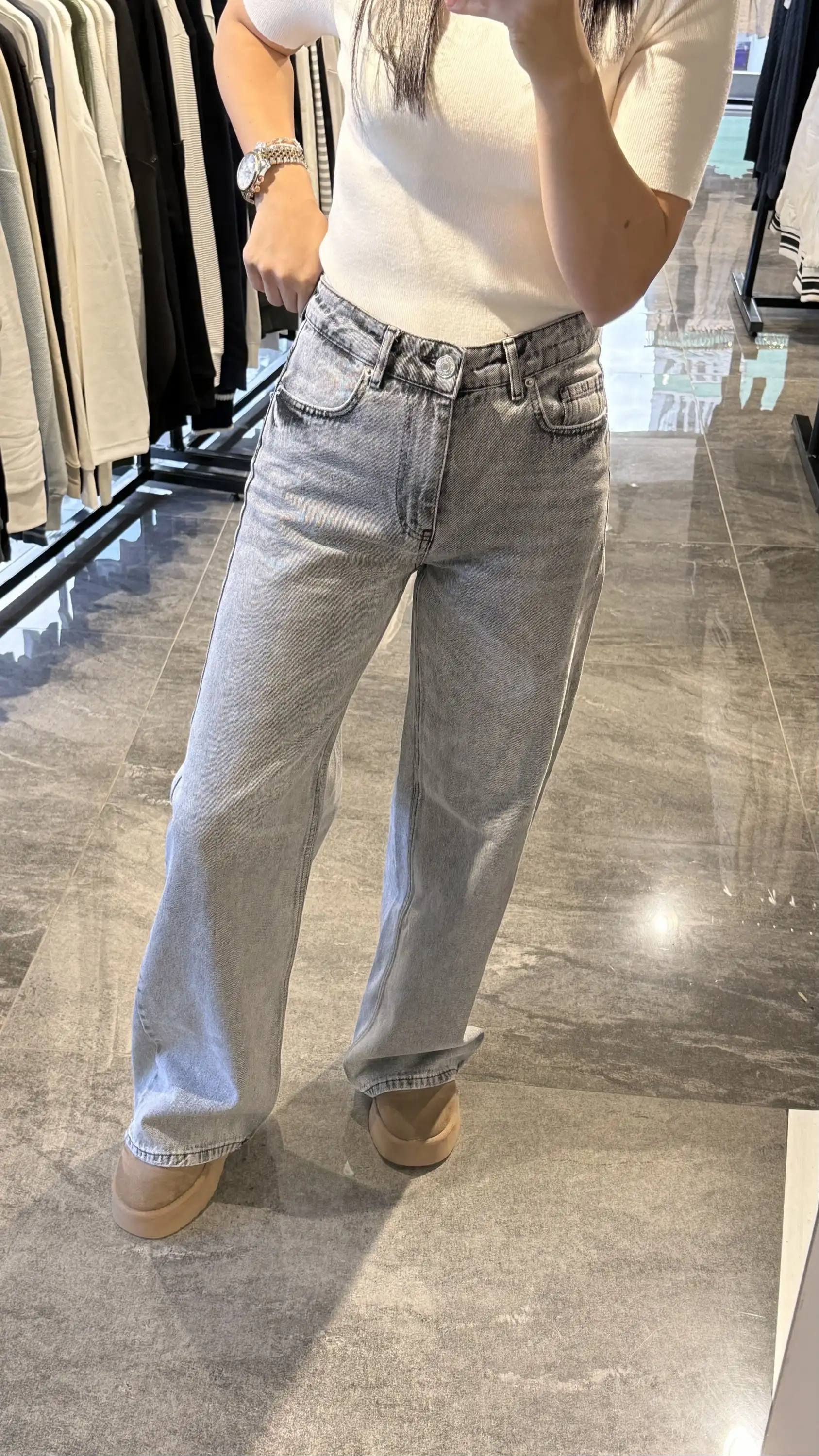 Yüksek Bel Mom Gri Kot Jean Pantolon